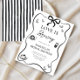 Minneshögen med den här eleganten "Kärlek brinner" Svarta Bow Inbjudningskort för möhippan! Designad med en svart chic-bugg, mjuka neutralter och finare kaffeinspirerade detaljer, blandar den här inbjudan modern elegans med en mysigt cafékänsla. Perfekt för en klassad möhippa, brunch eller te party. Anpassa enkelt texten med din händelseinformation och gör den unik för dig.