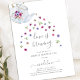 Möhippa te party duschinbjudan med en tekanna som häller ut blommor som omger vacker manusjografi med talesättet Kärlek är Brewing. En så söt design för ditt te party! Se samordna saker i vår butik, Enchanted Finch.