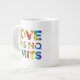 Denna utformning innehåller frasen "Kärlek har inga gränser" som bildas i färgstarkt regnbåge i färg.