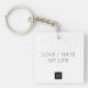 Enkel design med texten "KÄRLEK / HATE MY LIFE" tryckt i svart - för ibland är vi absolut kärlek våra liv och ibland är det motsatsen. Anpassa med en början.