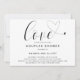 Modern duschinbjudan till par med en enkel och minimal design med ord, "kärlek" i kalligrafi med en hjärtsvikt i slutet. Den minimalistiska paletten färg är svart och vit.