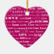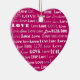 Kärlek Heart Ord Cloud - White on Fuchsia Rosa Julgransprydnad Keramik