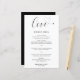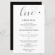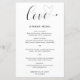 Cute bröllop-menyn med en enkel och minimal design med ord "kärlek" i en elegant typografi med ett hjärta i slutet. Nedan står din meny i en modern sans serif tillsammans med ditt namn och datum. Dessa billigt bröllop-menyer med ett minimalistiskt stil trycks på lakan av papper för ett budgetvänligt alternativ.
