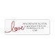 Kärlek Heart-skript | Modern Red and White Adress Returadress Etikett