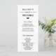 Bröllopsprogrammet i kärlek-hjärtan är perfekt för ett nordligt bröllop. Den romantiska minimalistiska utformningen har ett sött och enkelt hjärtklaffsteckensnitt. Ta med namn i bruden och trimmen, datum och plats för bröllop, tack, serviceordning, brudens sida och ett minnesmärke "i kärleksfullt minne" som tillval.