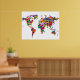 Karta i världen tillverkad av överlappande färgstarka halvgenomskinliga hjärtan, på vit bakgrund