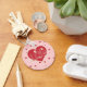 En söt och romantisk illustration precis i tid för Alla hjärtans dag eller under hela året för att uttrycka ditt lilla stil. Retro 60-design. Ett stort rött hjärta med ord Kärlek skrivet i en roligt och glatt stil. En grupp stjärnor omger texten. Bakgrunden består av fler hjärtan färgad vit, röd och rosa på baksidan av pastellernas rosa.
