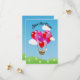 Bröllopskort med hjärtformad varmluftsballong "Save the date". Dessa är super söta och färgglada. Ett litet brudpar står i en flätad varmluftsballongkorg och dras uppåt av en massa ballonger i hjärtform i rosa, röda och lila nyanser. Fluffiga moln, blå himmel och ängar fulla av tusenskönor kompletterar designen. Han bär kostym, hon bär vit klänning och slöja. Du kan anpassa med din egen text! Många olika kartongytor och storlekar tillgängliga. DESIGNEN ÄR UPPHOVSRÄTTSSKYDDAD AV FIREDROPDESIGN.COM 2011.