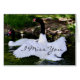 Ett svan med sina fjädrar på bred front mot ett annat svan. Produkter, kort, vykort, stämplar för valfri tillfälle.