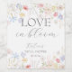 Kärlek i Blom Bröllopsdusch Blomsterbar skylt Vinflaska Etikett
