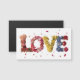 Färga blommor som ordnas för att stava ut "KÄRLEK" i ord skapar en pulserande och öga-infångande design. Mörkens bakgrund står i kontrast till blommornas levande färg, som betonar deras skönhet och form.