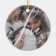 Denna vackra julprydnad har ord "Kärlek" i elegant, ett snabbt kalligrafiskt skript, med två av dina favoritfoton och ett handskrivet skrivet hjärta. Du kan lägga till initialer eller monogram, eller namn i nära och kära som mamma, mormor, familj eller make/maka. Perfektens helgdag är också viktig.