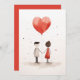 Ett minimalistiskt exempel och en hjärtslitande illustration av ett par som håller händer, sammankopplad med en röd, hjärtformad ballong som flyter ovanför dem. Den enkla utformningen, vattenfärgen struktur och mjuka stänk i färg på en vit bakgrund ge är en mild, drömmande känsla för teckningen, som symboliserar kärlek och tillsammans på ett rent och okänsligt sätt.