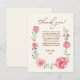 Visa din hjärtliga uppskattning med detta lilla tackkortet "Love in Bloom", perfekt för dina bröllopsfestgäster. Med känsliga akvarellblommor i mjuka rosa och gröna toner omger denna eleganta design ditt anpassade meddelande i en vacker blomsterkrans och fångar glädjen och tacksamheten på din speciella dag.
