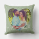 Modern och stilren anpassad kastkudde design har ett favoritfoto i en stor hjärtform med en minimal vit "Kärlek" typografi överläggsdesign som innehåller detaljer som flourishes och hjärtan. Den lövgröna bakgrundsfärgen kan ändras. En unik presentidé för ett nygift par eller för din älskade på Alla hjärtans dag!