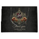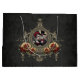 Kärlek i mörkret. Elegant, mystisk och samtidigt romantisk utformning av ett par i skallen bröllop med guld dekorationer och rött gul ros som symboliserar både passion och glädje. Denna utformning förenar romantik och individualitet på ett unikt sätt och vädjar till par som planerar ett okonventionellt firande.