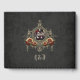 Kärlek i mörkret. Elegant, mystisk och samtidigt romantisk utformning av ett par i skallen bröllop med guld dekorationer och rött gul ros som symboliserar både passion och glädje. Denna utformning förenar romantik och individualitet på ett unikt sätt och vädjar till par som planerar ett okonventionellt firande.