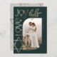 Elegant Hanukkah-fotokort med en elegant som är typisk för "Kärlek Joy Light" i faux guld inlindat runt ett bågfoto ram. Skrämmande guld-stjärnor skapar David stjärna. Den omvända sidan har en elegant som är en stjärnstjärna för David mönster. Bild efter Moodthology Papery.