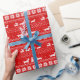 Cute Dachshund Älskare's jul Wrapping Papper. Festiv röd och vit julsvett stil mönster med Dachshunds klädande helgdag och en ekorre som rider ett glanshål som dras av Doxies. Text: Kärlek Joy Peace Wiener Hundar. Ursprunglig presentfigursättning för Weenie-Hundälskare. Besök Jenns Doodle World för ännu fler produkter med den här roliga Dachsie-designen, inklusive fler presentförpackningar.