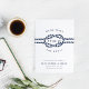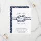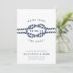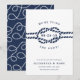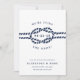 Meddela din bröllop till familj och vänner med den här kustnära chicen att spara datumkorten i den klassiska marinen blått och vitt. Utformningen har en skarp repillustration med bröllop-datumet i mitten, omgiven av "vi är gifter sig!" Anpassa dessa nautiska spara datumkorten med namn, bröllop-datum, plats och bröllop webbplats, eller en indikation på att en formell inbjudan kommer att följa. Kort på ett loopande nautiska rep mönster i vitt på flottan.