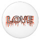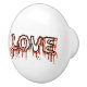 Kärlek. Typografi. Bara ett ord med dekorativt droppteckensnitt. Det är kärlek, fullt av hopp, tårar, blödande hjärtan. Apparat och andra produkter för vem som helst. Keramisk knopp.