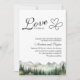 En inbjudan till elegant bröllop med vattenfärgsberg och gräs träd som du kan anpassa med dina uppgifter.