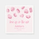 Söt och romantiskt Alla hjärtans tema möhippa papper napkin med illustration av rosa hjärtformade makaroner. I texten står det "kärlek ligger i luft".