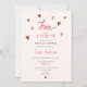 "Kärlek är i Luft" valentines Inbjudningskort för möhippan med söt handmålad vattenfärg och rosa hjärtan och ord KÄRLEK färgad i vattenfärg i rosa av blek.