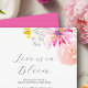 Kärlek är i Bloom - Elegant Blommigt Inbjudningskort för möhippa firar bruden att vara med dessa botaniska inbjudningskort för möhippa, perfekt för en sommarbrunch med bruden. Den här inbjudan har en blommigt med klara rosor i en fantastisk vattenfärgsdesign och anger tonen för en elegant och en glatt sammankomst. Elegant och botaniska - Showcase spolar blommigtar i pinkar, orangar och lavenders. Perfekt för vilken Möhippa som helst Brunch - Perfekt för en trädgård party, blommigt firande eller bubblande brunch. Anpassade och hög kvalitet - Välj professionellt utskrivna inbjudningar eller en DIY-digital fil. Kärlek är i Bloom, och det är också denna vackra möhippa! Upptäck mer från den här möhippan på https://www.zazzle.com/collections/floral_mimosas_and_matrimony_bridal_shower_themes-119822754151821636 Original water color art av Victoria Grigaliunas of Do Berätta A Belle.