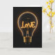 En glödlampa med "KÄRLEK" i ord tänd inuti tänds mot mörkens bakgrund. Inre text kan ändras.