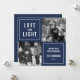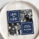 Visa dina kvadratiska foton i det här enkla, moderna Hanukkah-fotokortet. Utformningen har en fyrkantig layout med marin blå bakgrund och "Kärlek och ljus" i modern vit blockering. Använda de två anpassadena fält för att lägga till en anpassningsbar hälsning och din familj namn. Fotografi © Storytree Studios, Stanford, CA