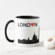 Vi älskar London, och att visa den, tycker om vi vårt kaffe från denna stilfulla märkes- kaffemugg som är glänsande med silhoetted byggnader från den London horisonten och den kända London med en hjärta som byter ut understödja "nolla".