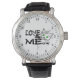 Kärlek Mow-texten och teckning av en rolig katt med grönt öga. Lustigt handklocka för vem som helst.