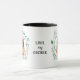 "KÄRLEK my COCKER" förklarar detta mugg för den amerikanska Cocker-spanske älskare. På vardera sidan om mugg finns en vacker vattenfärg porträtt i en spaniel i en blå grönt-andetag i löv. Mellan två bilder finns texten som du lätt kan anpassa.