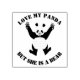 Tum svart och vit panda som står på baksidan av ben, upphöjd över huvudet. Med en text som går att ändra och som lyder: "Kärlek My Panda, men hon är ett björn"