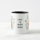 "KÄRLEK MY CHOW" deklarerar mugg för Chow Chow Hund älskare. På vardera sidan om mugg finns en vacker vattenfärg porträtt av en röd Chow Chow i en blå grönt löv-andetag. Mellan två bilder finns texten som du enkelt kan anpassa eller till och med ta bort.