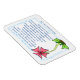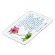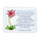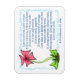 Magnet har de bibelverser från 1 Corinthians 13:4-7a som säger: "Kärlek är tålmodigt, Kärlek är snäll, det är inte avundsjuk, det skryter inte, det är inte stolt, det är inte ohövligt, det är inte så ängsligt, det behållor inga meriter. Kärlek gläds inte åt ondskan utan gläds åt sanningen. Den skyddar alltid, alltid litar alltid på, alltid hoppas, alltid framhärdar. Kärlek misslyckas aldrig." Bakgrunden är en anpassningsbar designad rosa blomma med blått gräns.
