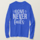 Kvinnors t-shirt med citatet "Kärlek Misslyckas aldrig"