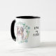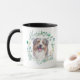 "KÄRLEK MY AUSSIE" förklarar mugg för Hund älskare i Australian shepherd. På vardera sidan om mugg finns en vacker vattenfärg porträtt i en Aussie i en blå grönt löv-andetag. Mellan två bilder finns texten som du enkelt kan anpassa eller till och med ta bort.