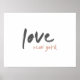 Modern, minimalistisk "Kärlek New York"-inspirationstext poster tryckt i en svart snyggt med damskig rosa i en handmålad stil-typografi med skandinaviskt minimalism stil och inspirerad av resande och kärlek i New York City i USA. En del av Kärlek-designsamlingen som omfattar ett stort antal produkter med en rad kompletterande kärlek inspirerade till upplyftande märkre linjer! | Relaterade nyckelord: ny, nyc, america, brooklyn, manhattan, lång ö, staten ö, boston, bronx