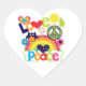Fredssymboler, hjärtan, uggla, ljusa färger, sol, regnbåge och ett underbart budskap på T-tröjor från Kärlek och Peace Baby, hookar, mugg, magneter, knappar, kort, klistermärken, säckar, nyckelkedjor, kuddar och många andra kärlek och fredsinspirerade kläder och presentartiklar.