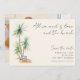 Vattenfärgen handflatan träd med en utformning av strandsäck sparar datumkorten för ditt turistbröllop på vår "Allt vi behöver är kärlek och stranden"-design. Anpassa framsidan med information om bröllop och lägg till ett foto på baksidan.
