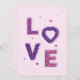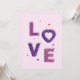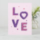 En härlig Alla hjärtans dagskort som visar ord "Kärlek" bildades helt av hjärtformer. Uttrycket "Allt du behöver är Kärlek" visas elegant bredvid, både i mjuka rosor och i lila. Den här designen lyser romantik och charm och fångar kärlek innersta väsen med en söt och livfull beröring.