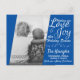 Skicka en julhälsning till dina vänner och din familj med det här vykortet för Helgdag Kärlek & Joy Blue jul. Den innehåller ditt favoritfoto och ditt favoritutrymme för anpassning med ditt namn och ett meddelande.