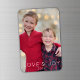 Lägg till lite kärlek och glädje i dina älskades presenter med de här enkla, klassiska, personlig fotomagneterna. Anpassa med din egen familjefoto av dina barn och lägg till året för en speciell och helt unik och anpassad fotogåva från extra. Detta ger en underbar gåva till mor- och farföräldrar, förlängd familj, vänner och närstående. Den här designen fungerar bäst med ett lodrät, ett porträtt-foto med ett mörkare grund så att texten framträder. Texten står "Kärlek och Joy" med fet, vit text.
