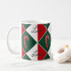 Polkagrisarnas diamant mönster och kärlek i ord i kursiv stil görs i rött, grönt och vitt färg.