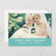 Kärlek och tack Aqua Blå Bröllopsmonogram Foto Vykort