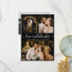 Elegant, Modern Black and White Hand Lettered Bröllop 3 Photo Collage - tack för ditt kort. Snyggt bröllop tackar dig för att du har en kortmall med (3) tre foto på framsidan och (1) ett foto på baksidan. Med texten "Kärlek och tack"-skript i ett kursivt, snurrande typografiskt swash-svan-teckensnitt i vit färg på svart bakgrund från färg. Anpassa ditt eget namn och tack för meddelandet. Om du föredrar att skicka anteckningen tar du bara bort exempeltexten för att få mer utrymme. Kontakta mig om du behöver hjälp eller matcha objekt!