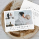 Ett enkelt 3-fotokollage-tackkort--kort i bröllop med enkel modern typ och 3 bilder på framsidan. Baksidan har ett personligt meddelande från paret. Klicka på knappen Redigera om du vill anpassa designen med foton och detaljer.