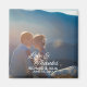 Anpassad fotomagnet i elegant bröllop-format gynnar Fullt-fotot med ett överlägg av elegant, vitt kalligrafiskt skript i grund som läser Kärlek & Tack med personlig brud och groom namn och bröllop-datum nedanför det. Visa ditt favoritfoto för lycklig par förlovning. Gör en unik bröllop-fotokeepé för vänner och familj. Vi har även andra anpassningsbar för fotobröllop.